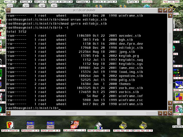 > > Did you enter "editobjc.slb" correct? You wrote "editjobc.slb" above... > > You can change permissions very easy with TeraDesks Info-Dialog. > Or type command "chmod u+rwx editobjc.slb" in shell, this sets user (u) > permissions to > read/write/execute (r, w, x). > Then type command "chmod go+rx editobjc.slb", this sets group and others > (g, o) to > read/execute (r, x). > For more info about any command enter "man <commandname>" in shell. Under Teradesk i saw that it is working fine, but when I try under Jinnee it still the same. In the screenshot (see attachment) you see that first i type command go+rx editobjc.slb and later go+rx, I type command ls -l to check flags but it is same (no changes) I restart the computer I saw information again (could not load editobjc.slb) Is it difference beetwen Teradesk or Jinnee ? Best regards Piotrek > > Regards, > Lars -- ---------------------------------------------------- Dr Piotr Mietniowski Department of Electronics AGH University of Science and Technology Av. Mickiewicza 30 30-056 Krakow, Poland Bldg. C1 r. 212 tel. +48 12 617 30 44 e-mail: mietniow@agh.edu.pl ----------------------------------------------------
