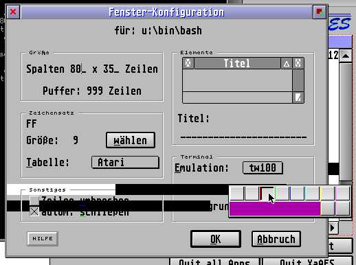 : [MiNT] TosWin2 2.7 Fenster konfigurieren.. trunk-09082010, Colour selection