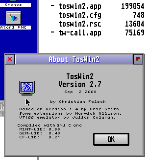 Just to clarify, this isn't a 2.7 vs 2.6 issue. I've just tried 2.7 that I already had (I think comes with ?easymint or aranym distribution) and it works fine [bug in display is NOT present] with latest xaaes. So to be specific, I was reporting the issue with what is provided in the tools folder of the trunk-0908 build, but it now looks like it is not xaaes or mint ;-) hope this helps someone. Matt. > From: joska@online.no > To: mint@lists.fishpool.fi > Subject: Re: [MiNT] TosWin2 2.7 Fenster konfigurieren.. trunk-09082010, Colour selection > Date: Fri, 20 Aug 2010 13:25:22 +0200 > > > -------------------------------------------------- > From: "Miro Kropacek" <miro.kropacek@gmail.com> > Sent: Friday, August 20, 2010 12:56 PM > To: "Jo Even Skarstein" <joska@online.no> > Cc: <mint@lists.fishpool.fi> > Subject: Re: [MiNT] TosWin2 2.7 Fenster konfigurieren.. trunk-09082010, > Colour selection > > >> However, I'm using old/ancient libs from the original EasyMiNT install, > >> so > >> the problem is most likely with CFlib where the colourpicker is > >> implemented. > > Hmm, it isn't that easy to reproduce. I just compiled cflib+toswin > > with latest gcc (even used cross and native environments to build) and > > -- nothing, color picker still works fine. Maybe it's only related to > > palette graphics but as I see, Matt uses hicolor (gradients), really > > strange. But I clearly remember having this problem constantly, I'll > > check on my Falcon tonight. > > I'm using hicolour too. 16 bit colour on my Milan. > > Jo Even > > > |